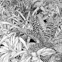 A very detailed drawing of a variety of tropical plants, inspired by a visit to the Botanic Garden in Melbourne